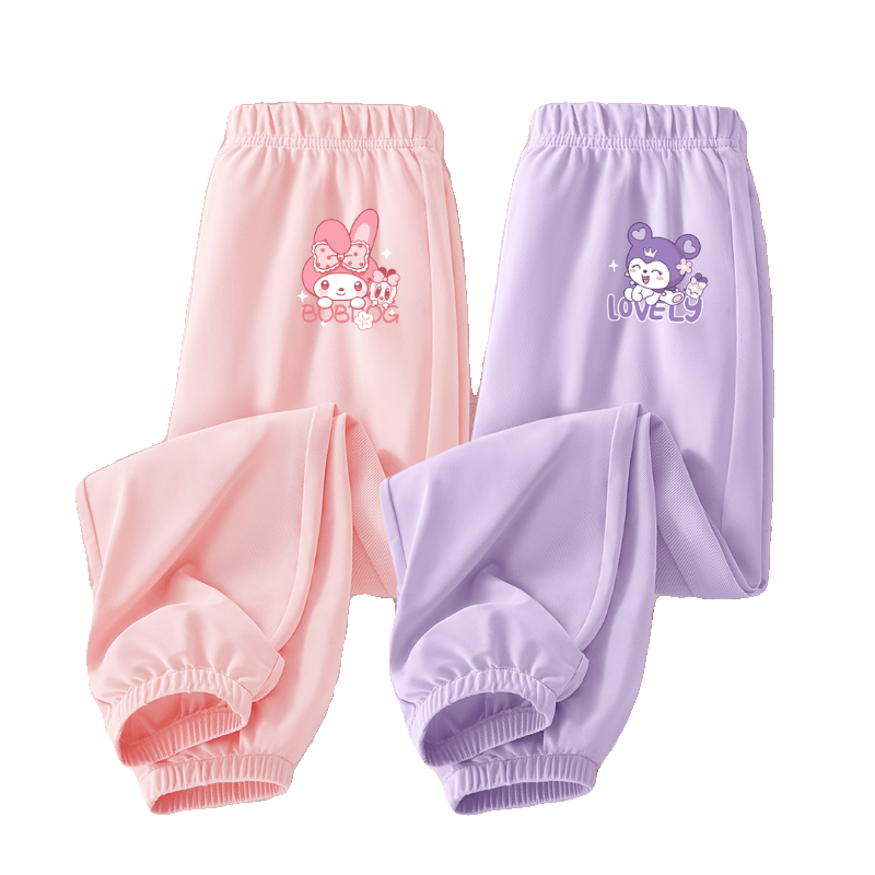 巴布豆女童裤子夏薄款2025新款儿童夏装女宝冰丝防蚊裤女孩运动裤