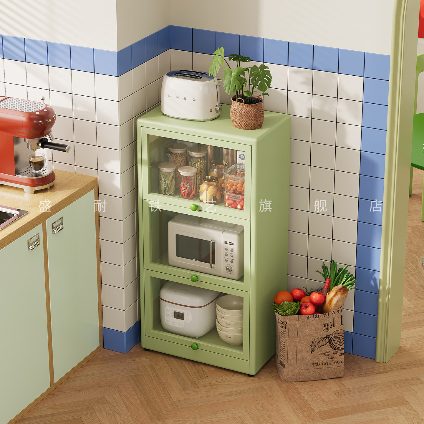 新型钢制多功能厨房置物架家用多层大容量铁艺碗柜收纳边柜储物柜