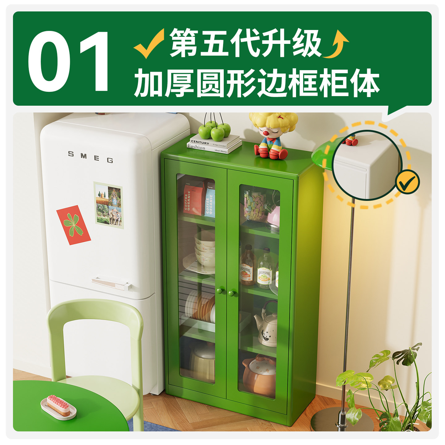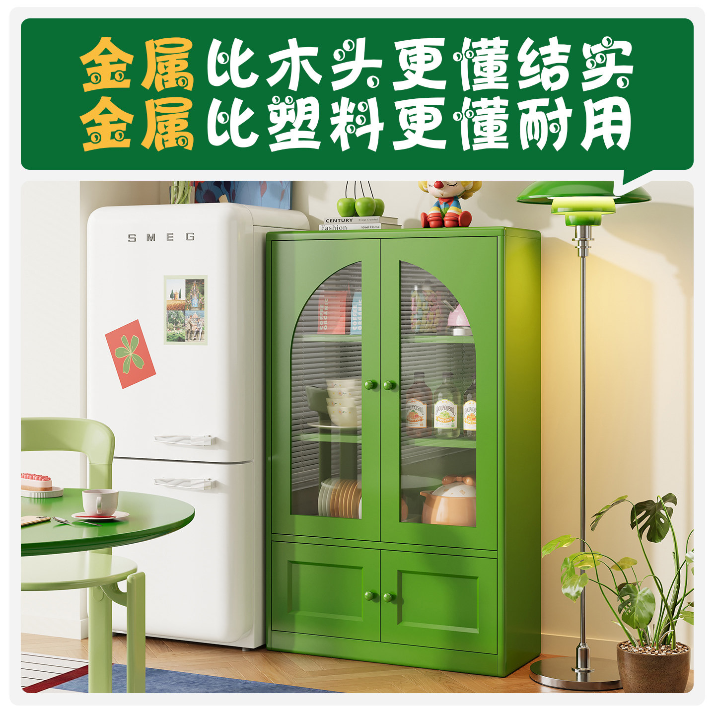 矮柜餐边柜2026年新款复古风厨房小边柜置物柜客厅落地铁艺储物柜