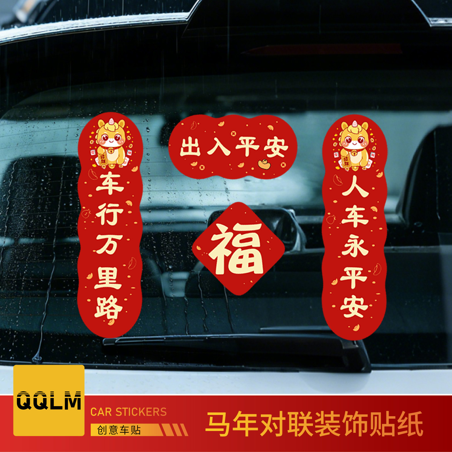 2026新款年对联车贴新年磁吸马年平安喜乐新年春节福字创意车贴纸