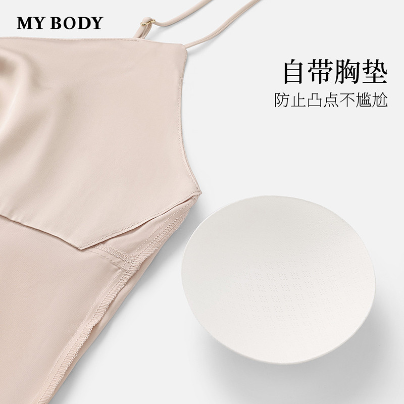 商场同款MYBODY丝滑吊带睡衣女套装性感带胸垫可外穿V领短袖短裤