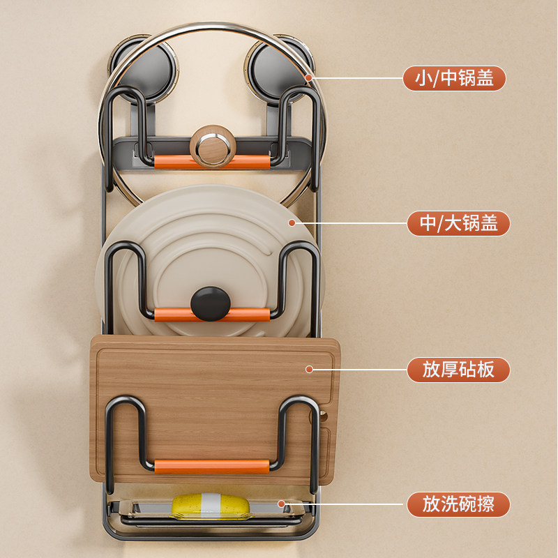 吸盘锅盖架免打孔壁挂式厨房多功能砧菜板置物架子放置器多层台面