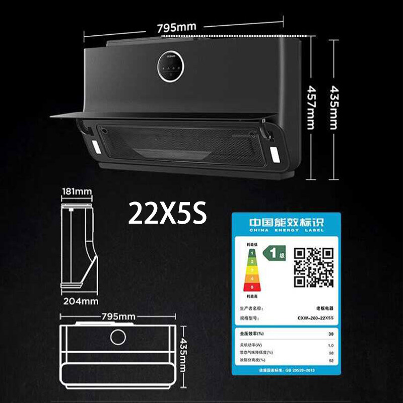 老板抽油烟机22X5S 小尺寸 侧吸油烟机变频23大吸力 厨房烟灶套装