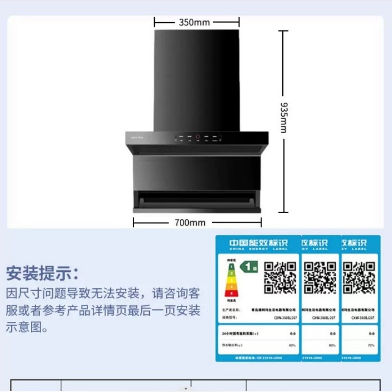 澳柯玛吸油烟机顶侧双吸挥手智能大吸力自动清洗长700mm小尺寸
