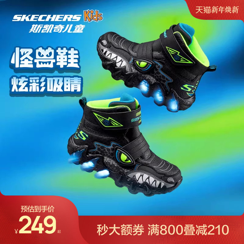 Skechers斯凯奇儿童怪兽鞋秋冬闪灯男童鞋潮流炫酷亮灯休闲鞋子