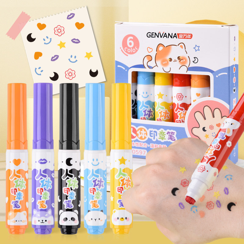 金万年人体彩绘印章笔儿童脸部面部彩绘笔可水洗皮肤水彩笔水溶性宝宝幼儿园专用画笔美术直播pk主播黑色化妆