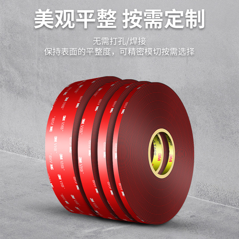 3M5915黑色强力双面胶大卷汽车专用胶带高粘度无痕防水耐高温尾翼粘接内饰固定粘胶