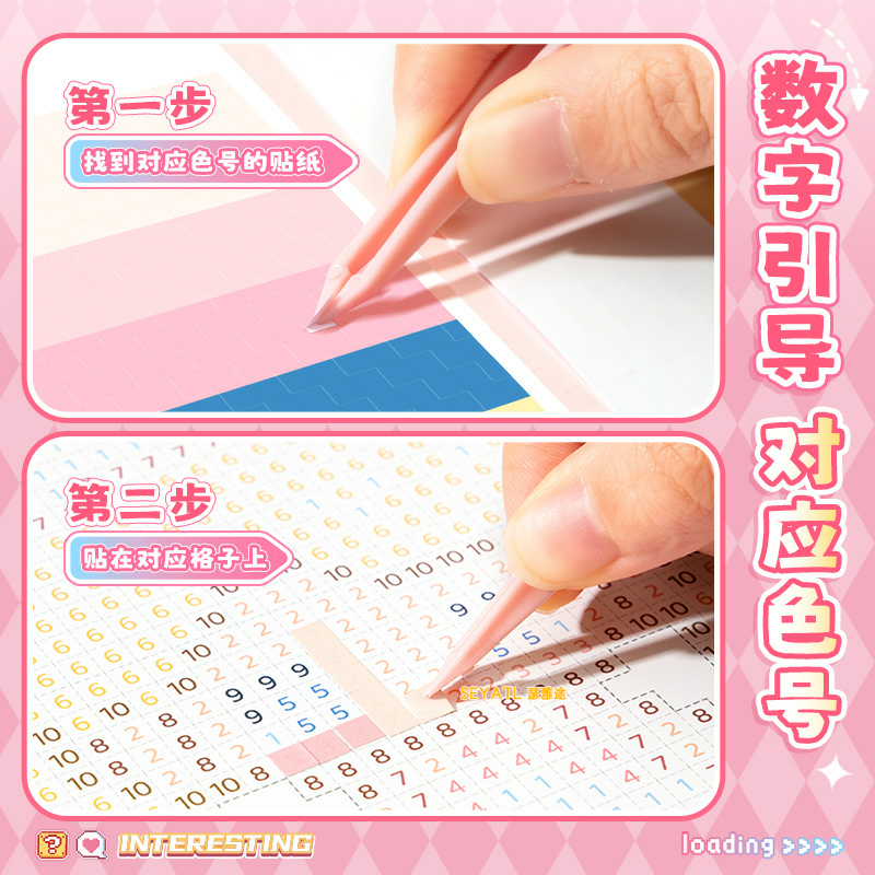 SEYATL新款迷你马赛克贴纸像素风豆豆本儿童益智玩具手账~贴纸/立