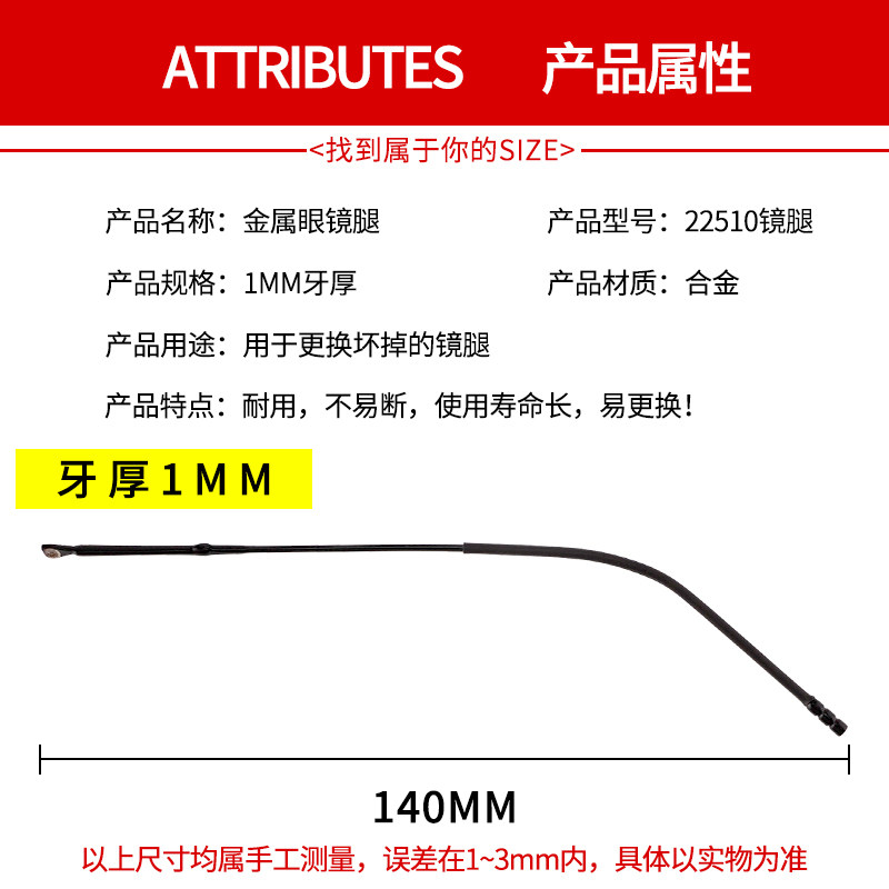眼镜腿异形单牙1毫米牙厚修复镜脚断裂外牙修理配件送螺丝刀螺丝
