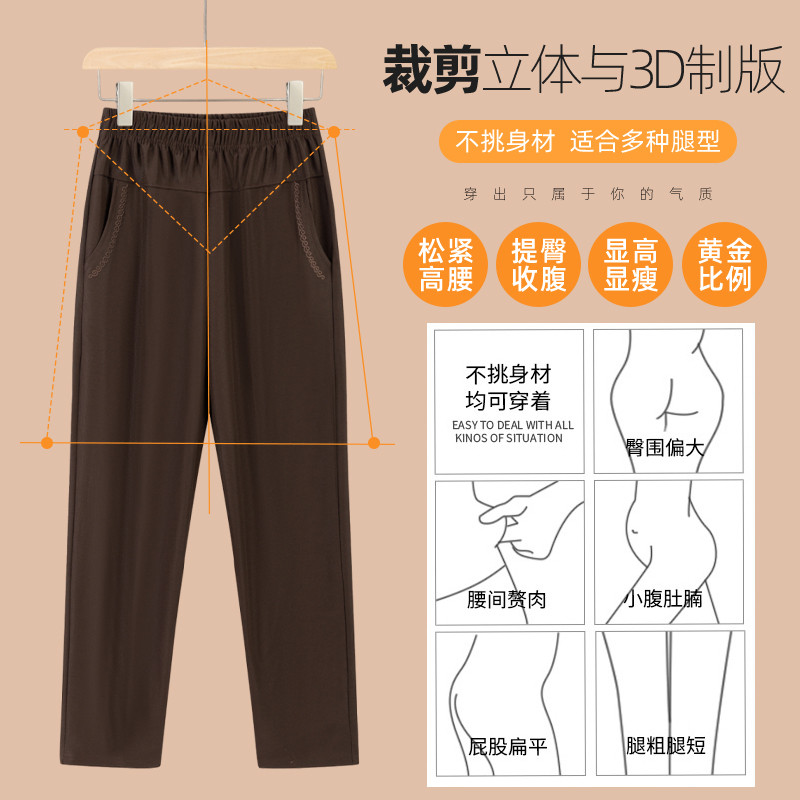 妈妈裤子春秋款松紧高腰弹力中老年女裤宽松大码直筒奶奶加绒长裤