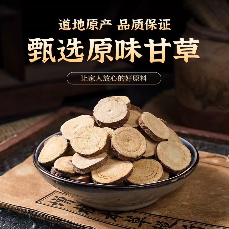 甘肃甘草片中药材原色泡水养生非野生红皮甘草大片正品官方旗舰店
