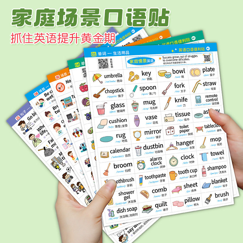 日常英语口语便利贴家庭情景亲子幼儿早教启蒙生活场景贴纸小学英语单词随处贴防水贴家用日常英文单词便利贴