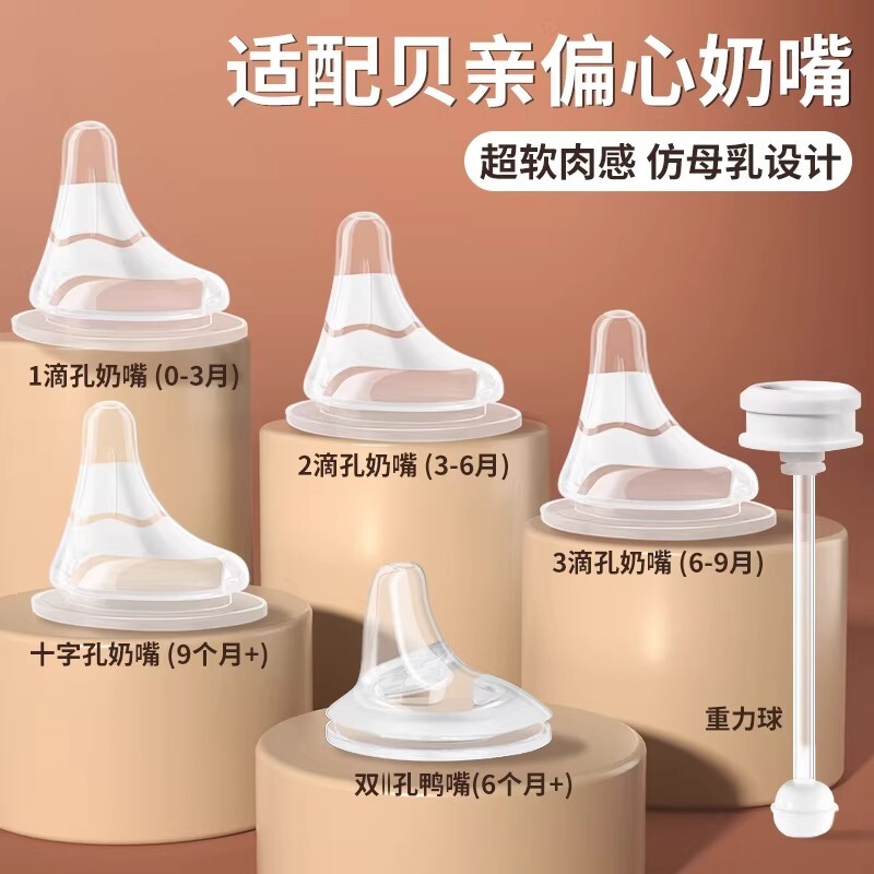 适配贝亲偏心奶嘴鸭嘴重力球6/9个月一岁以上s/m号pigeon奶瓶配件