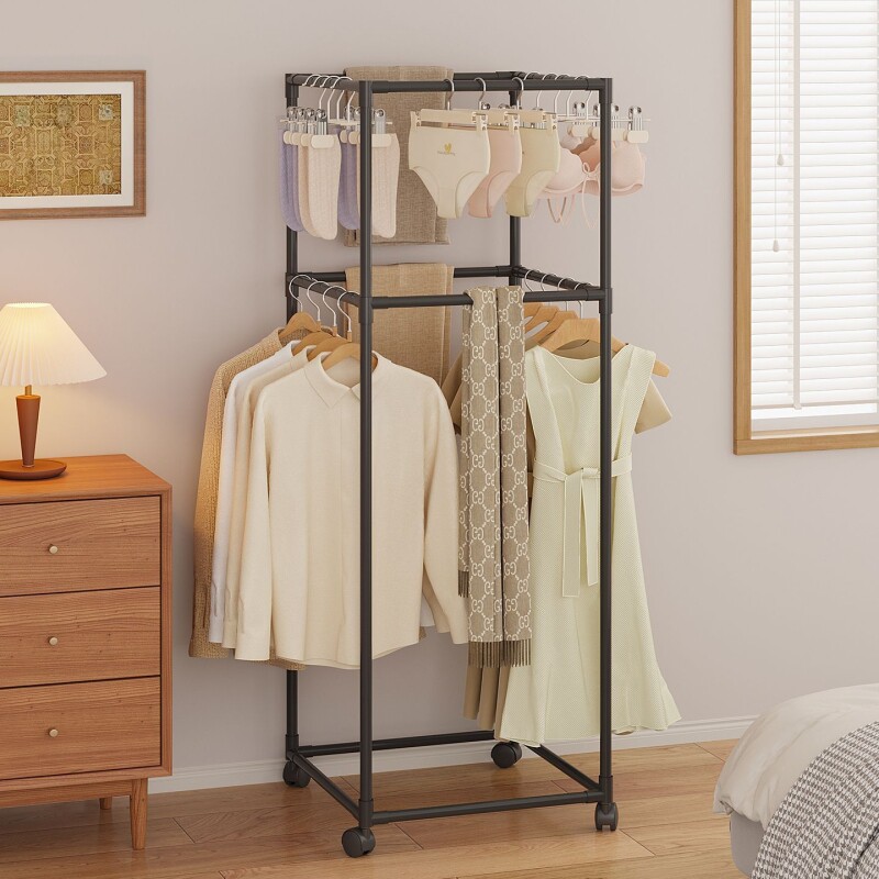 挂衣架晾衣架落地卧室衣帽架宿舍小型衣服收纳双层移动阳台简易