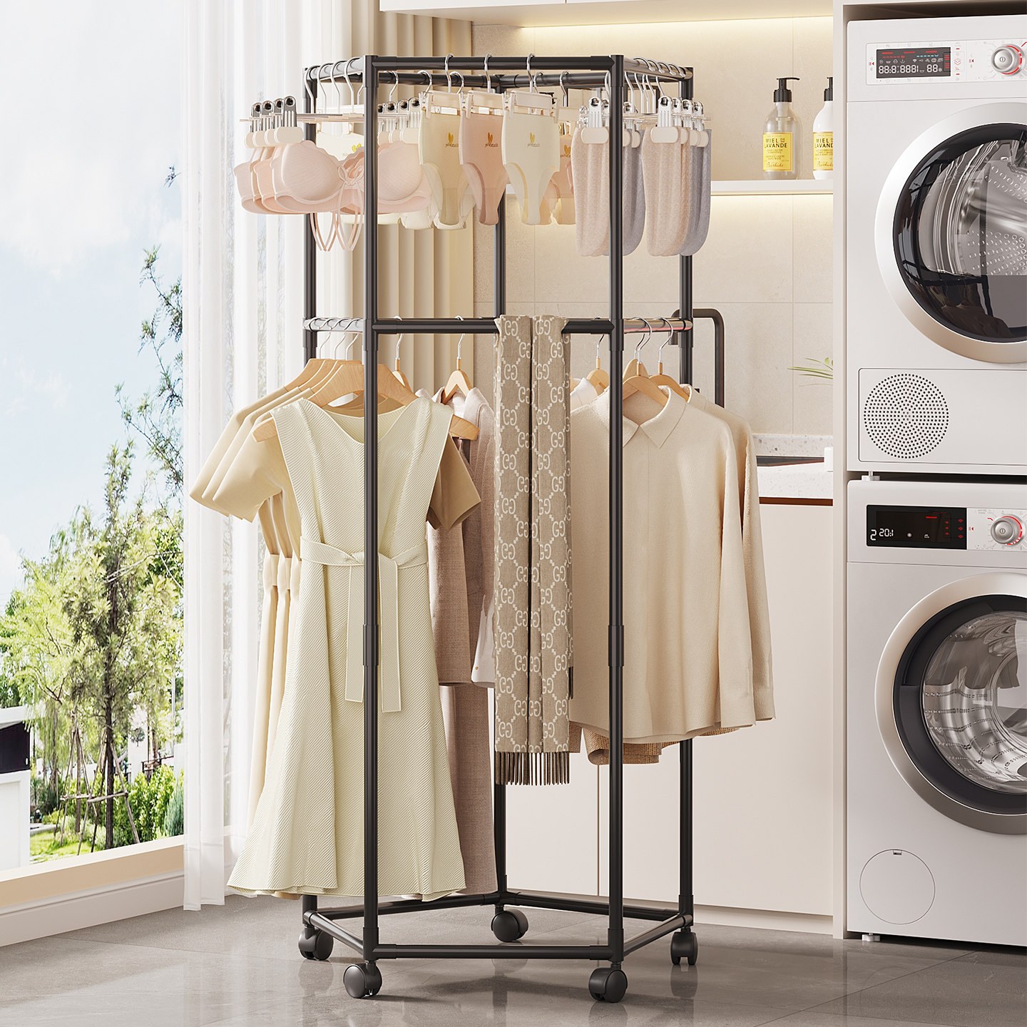 晾衣架落地家用可移动卧室美容院挂衣服架子室内阳台简易杆衣帽架