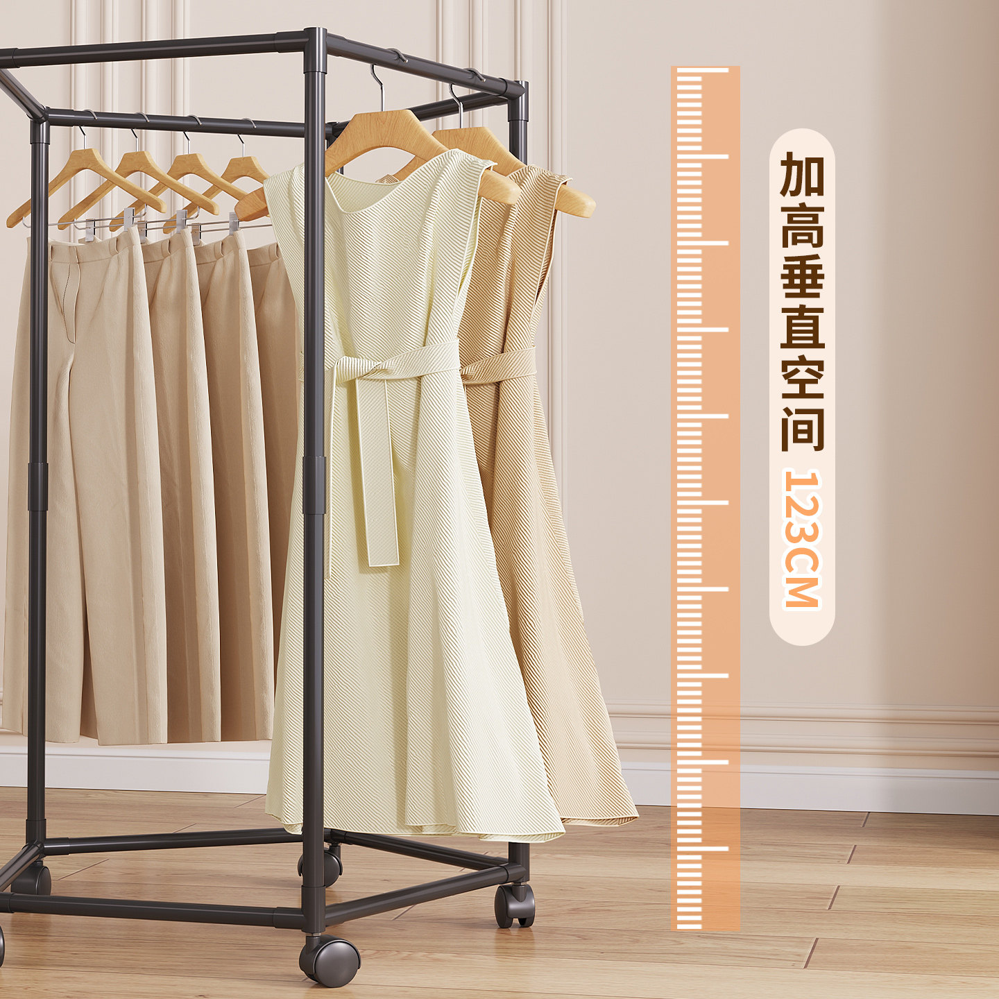 衣架卧室落地家用衣帽架铁艺晾晒衣架子高级室内立式可移动挂衣架