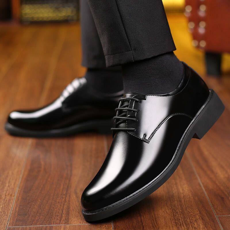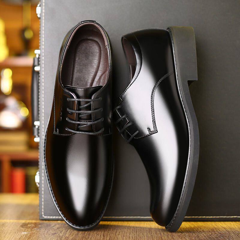 免开胶真皮休闲皮鞋男款软皮厚底增高透气商务系带平底缝线德比鞋