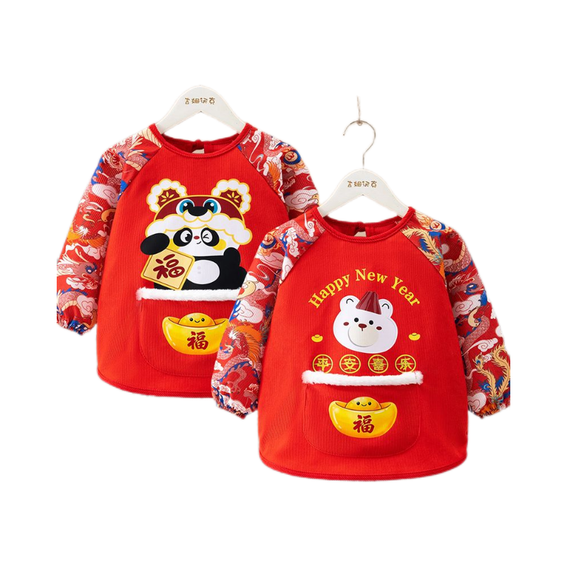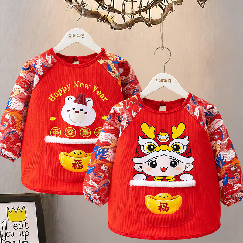中国风儿童罩衣秋冬外穿洋气唐装拜年服宝宝吃饭围兜红色围裙新年