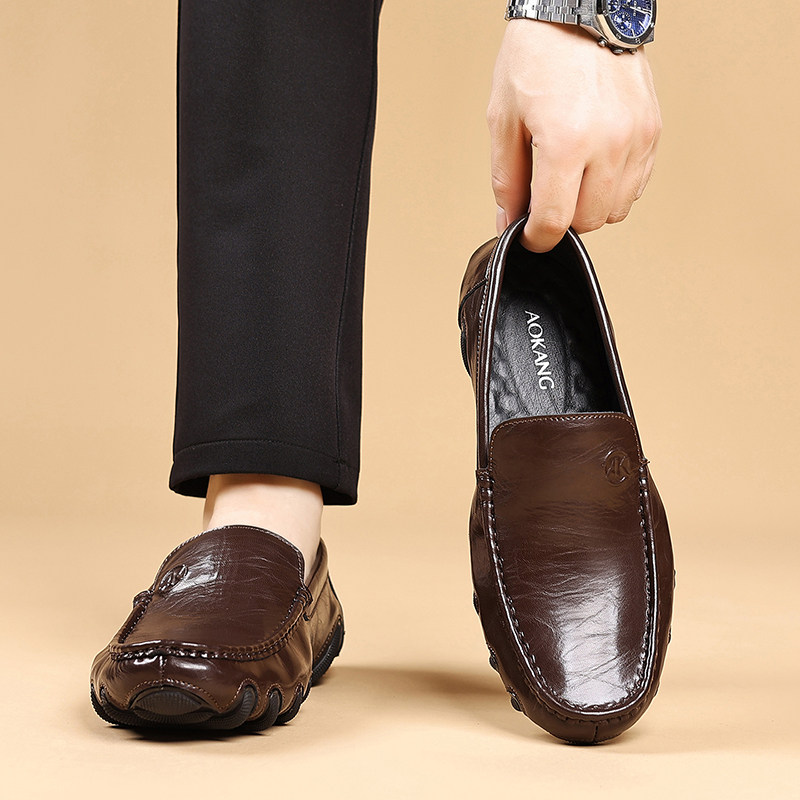 奥康官方男鞋春秋季真皮商务休闲皮鞋时尚套脚平底脚蹬舒适爸爸鞋