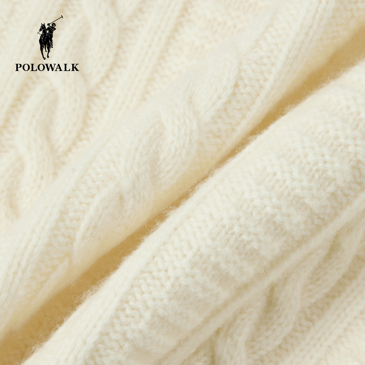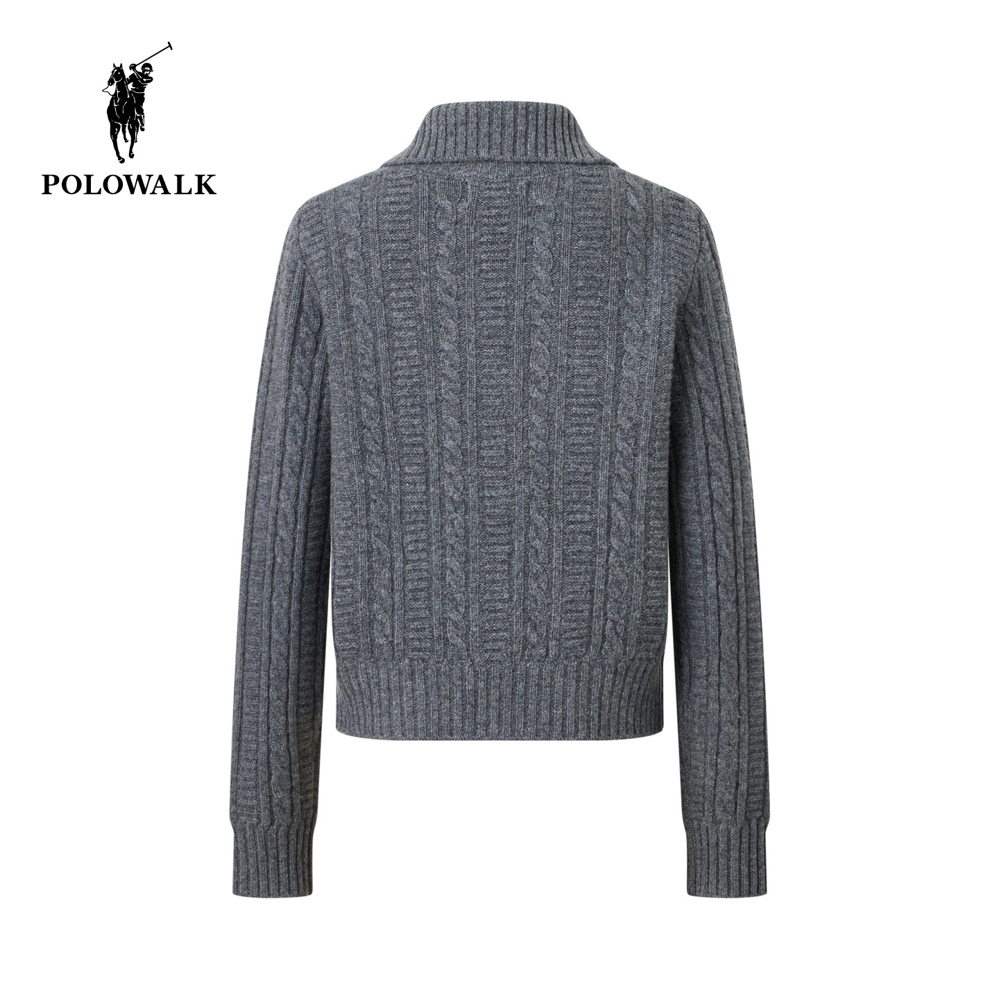 【100%绵羊毛】POLOWALK女士羊毛衫2026春季翻领绞花毛衣拉链开衫