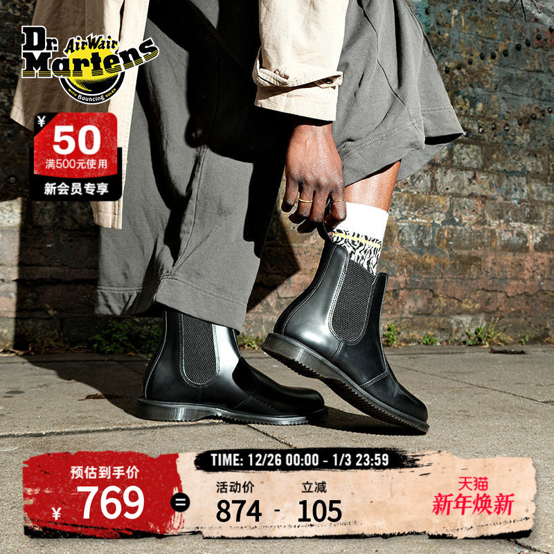 Dr.Martens马丁博士Flora英伦秋冬舒适休闲通勤光面皮黑切尔西靴