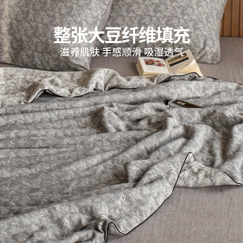 如奕高档A类全棉双层纱大豆夏凉被夏季薄被双人凉感可机洗空调被
