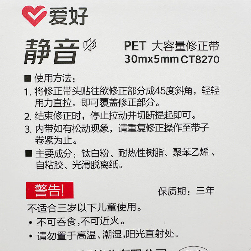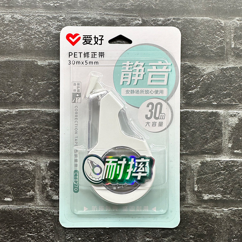 爱好CT8270PET静音修正带涂改带改正带修改带30米5MM宽白色耐摔