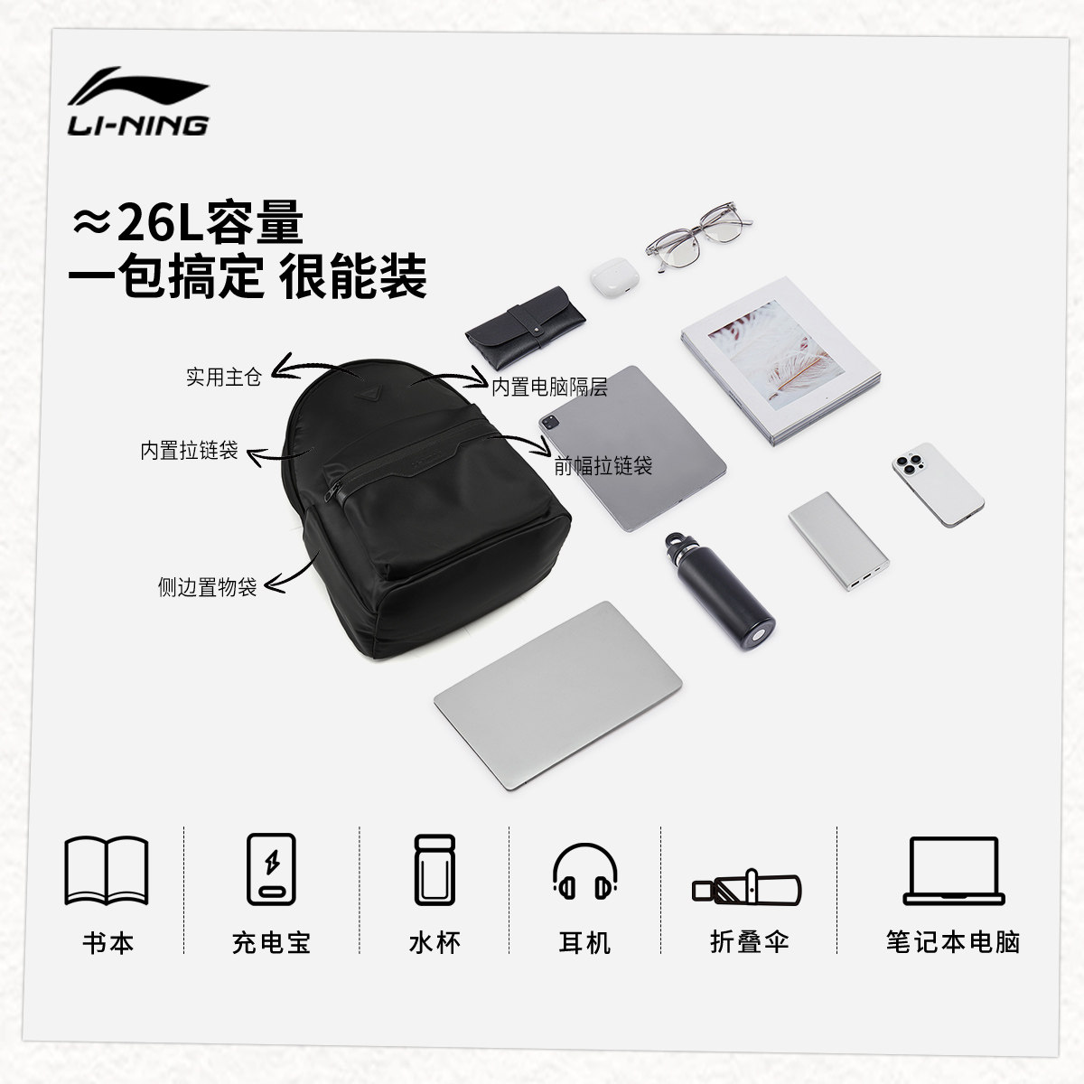 李宁双肩包男士2026新款通勤商务高级感背包旅行运动大学生书包女