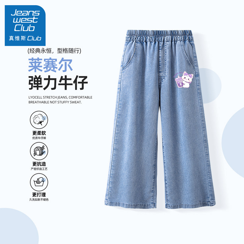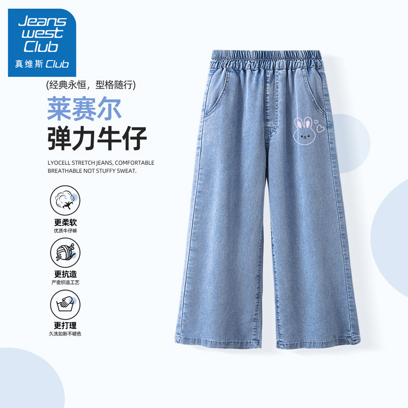 真维斯女童牛仔裤轻薄款2025新款儿童夏季直筒阔腿裤子女大童春装