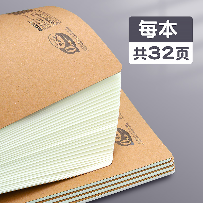 复古牛皮纸笔记本超厚空白本子加厚白纸本草稿本学习可平摊高颜值本记事本日记本a4a5小方格写作本大学生初中