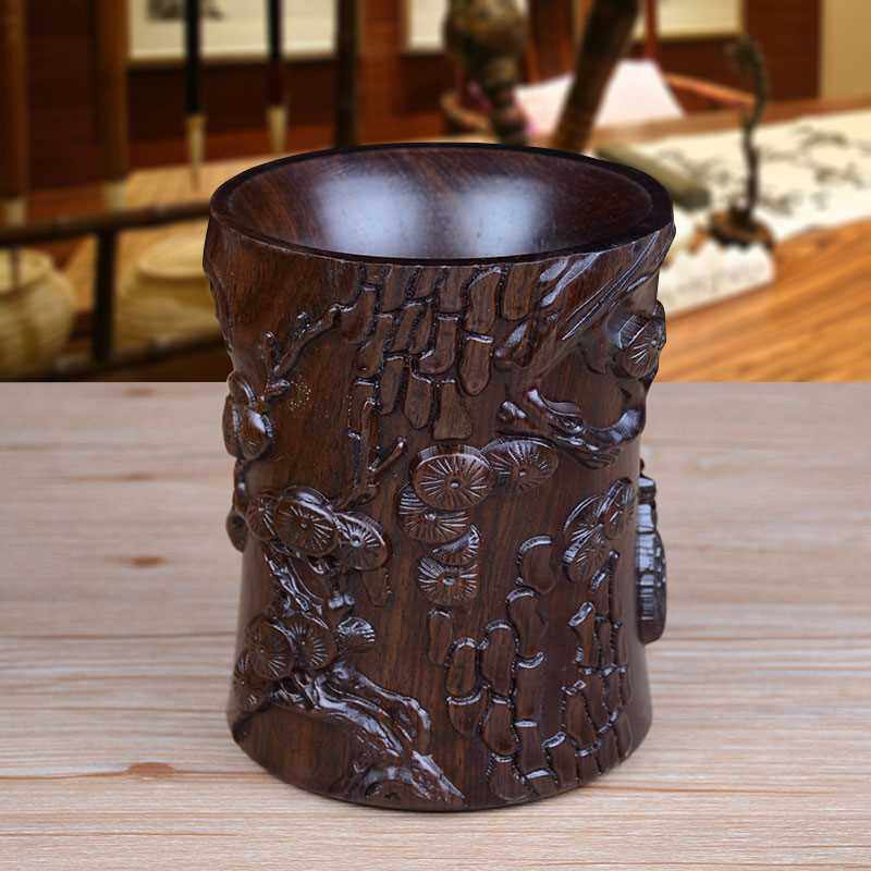 极速新新黑檀毛笔笔筒红木毛笔笔C筒工艺品摆饰木雕刻实木紫檀红