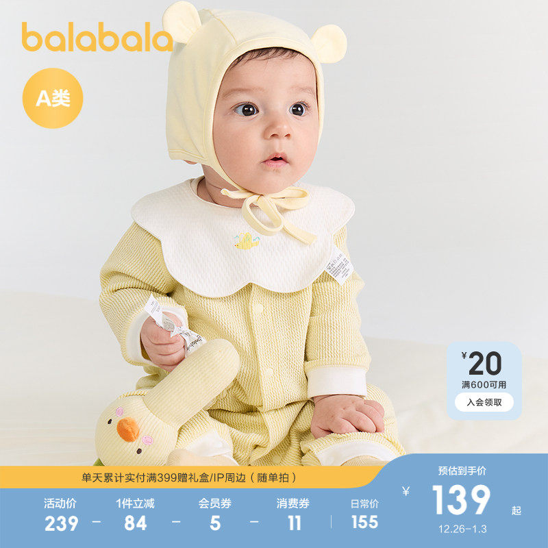 【商场同款】巴拉巴拉婴儿连体衣宝宝睡衣新生儿爬服哈衣2025新款