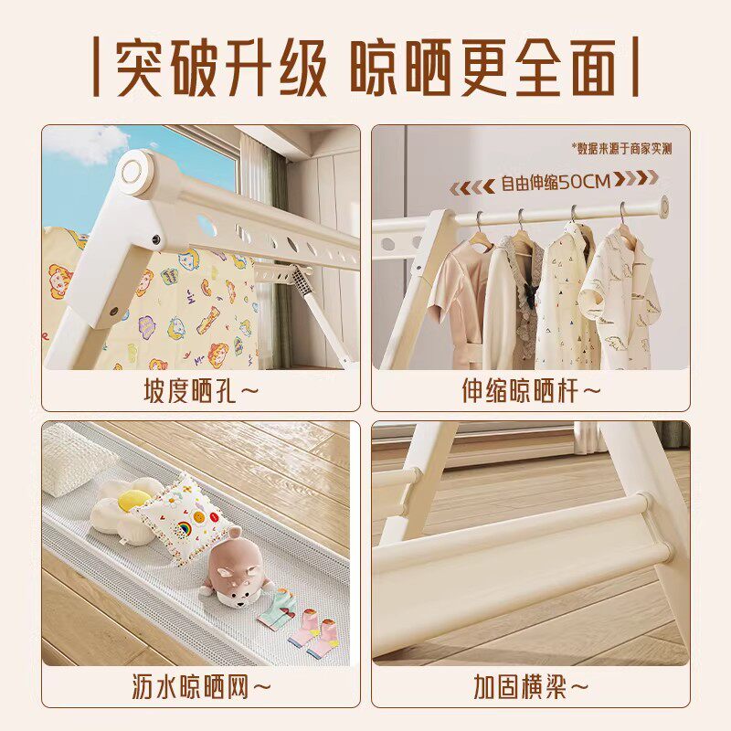 SHESHOME晾衣架落地折叠多功能家用室内不锈钢衣架阳台婴儿晒衣架