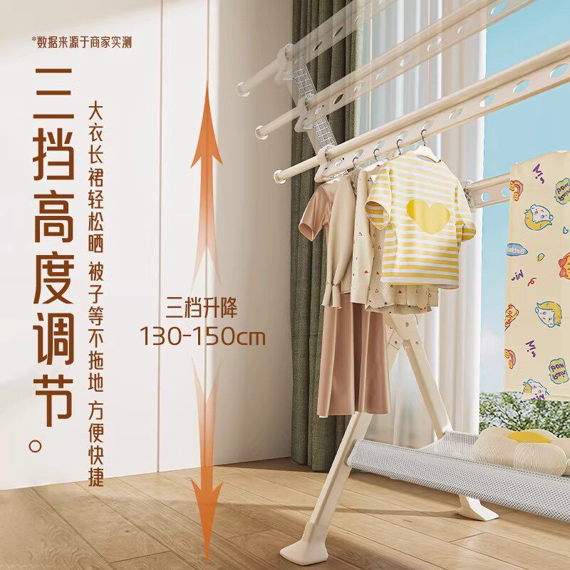 晾衣架落地家用阳台室内外折叠晾衣杆挂衣服伸缩晒衣架晒被子神器