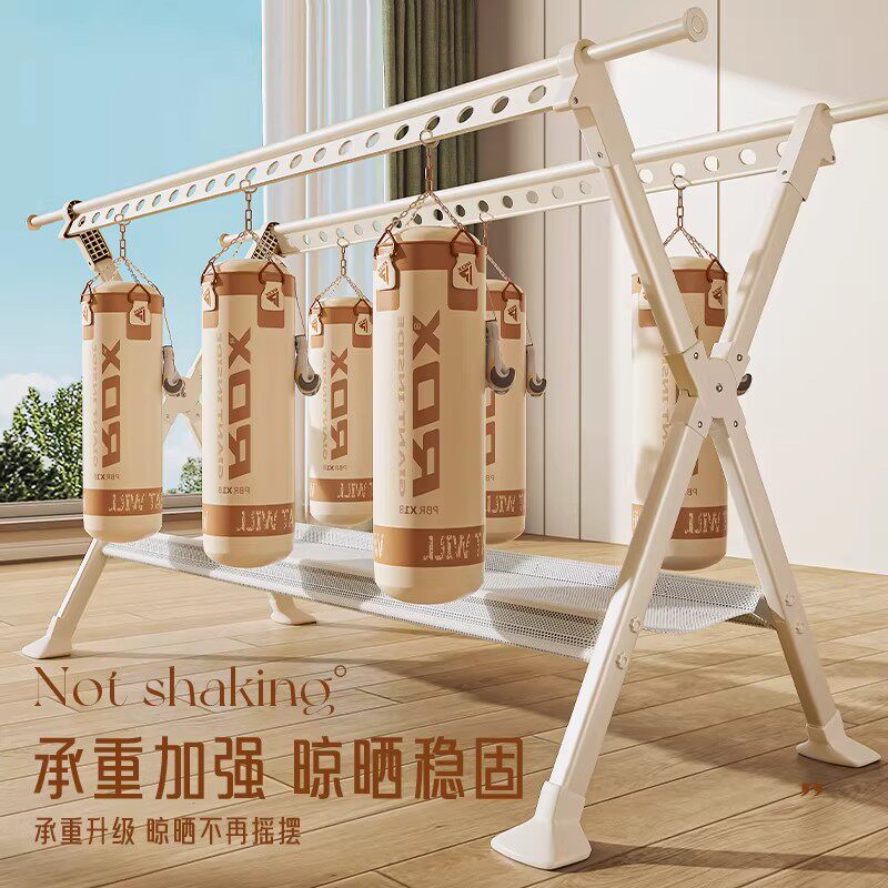 加粗加厚晾衣架落地折叠家用阳台卧室内简易可移动凉晒衣服被子杆