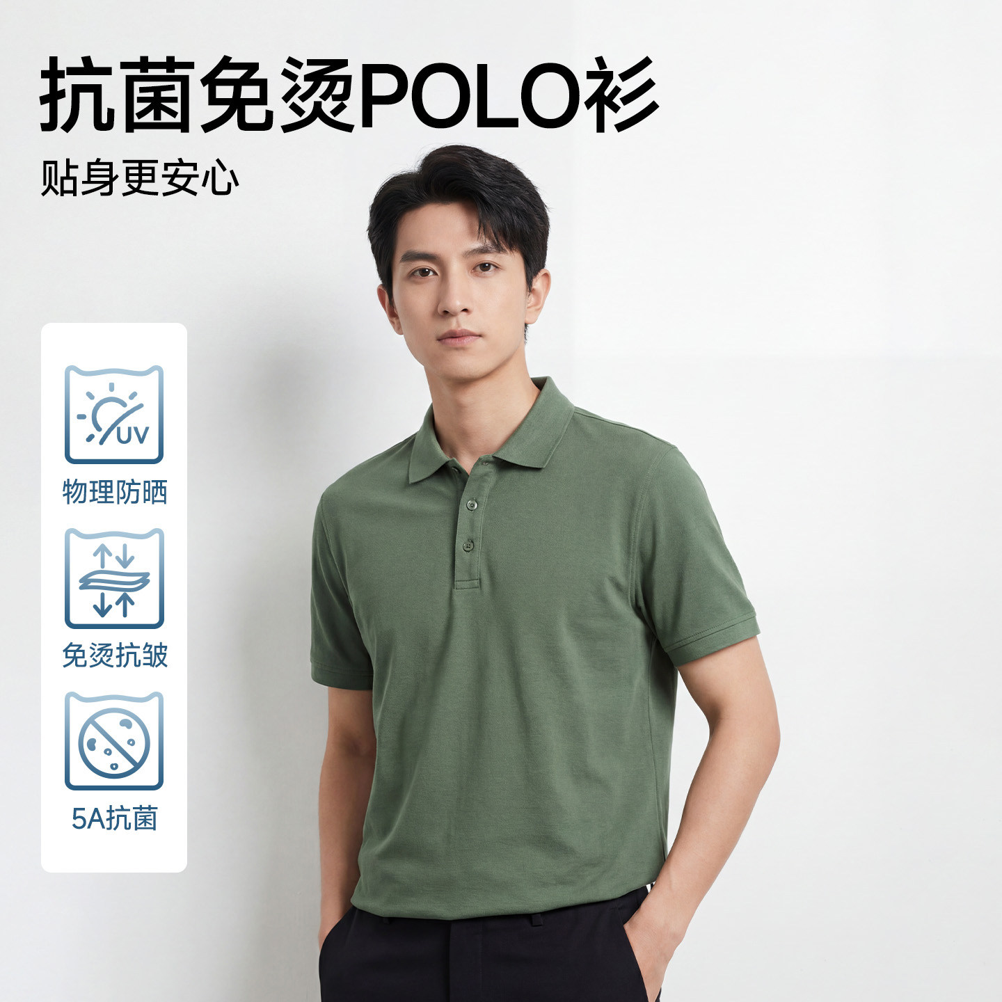 猫人凉感速干短袖polo衫男夏季5A抗菌休闲商务衬衫领半袖t恤男款J