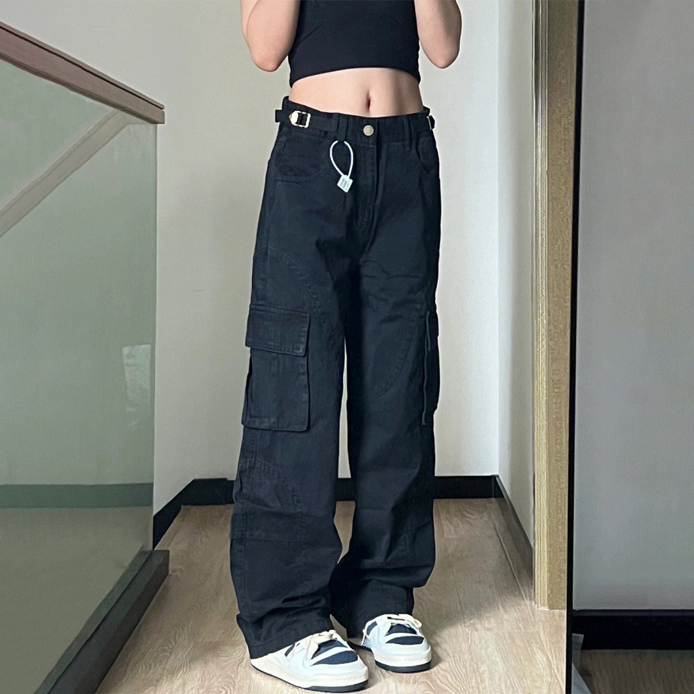 300斤特大码美式工装牛仔裤女直筒高腰胖mm宽松显瘦休闲阔腿裤子2