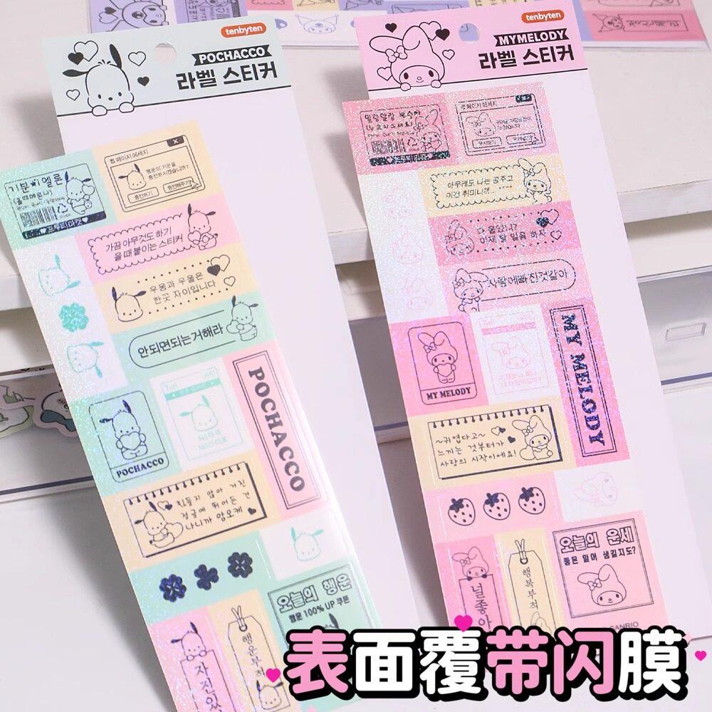 卡通尅帕恰狗手帐账贴ins风简约清新美乐蒂细沙镭射闪膜表情贴纸