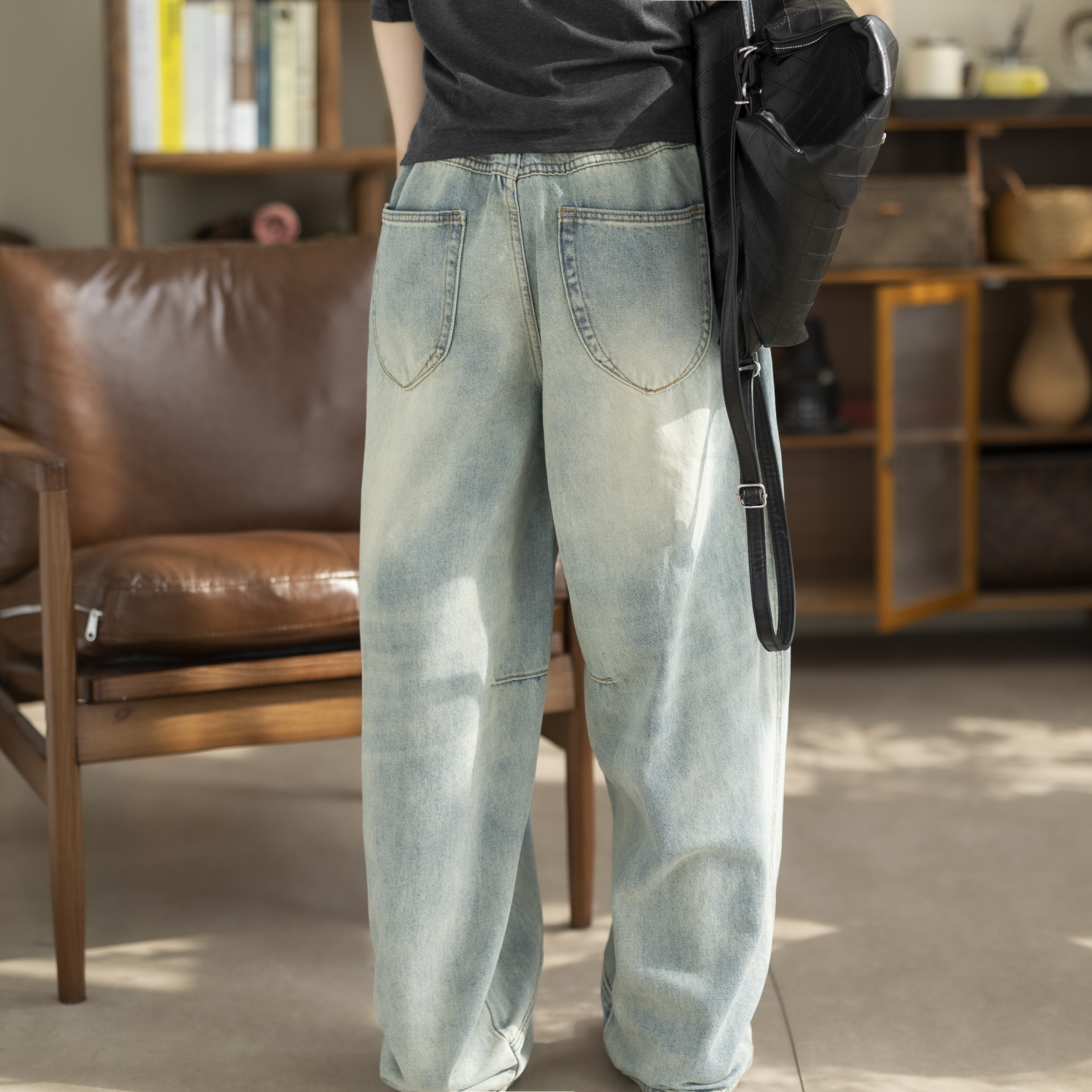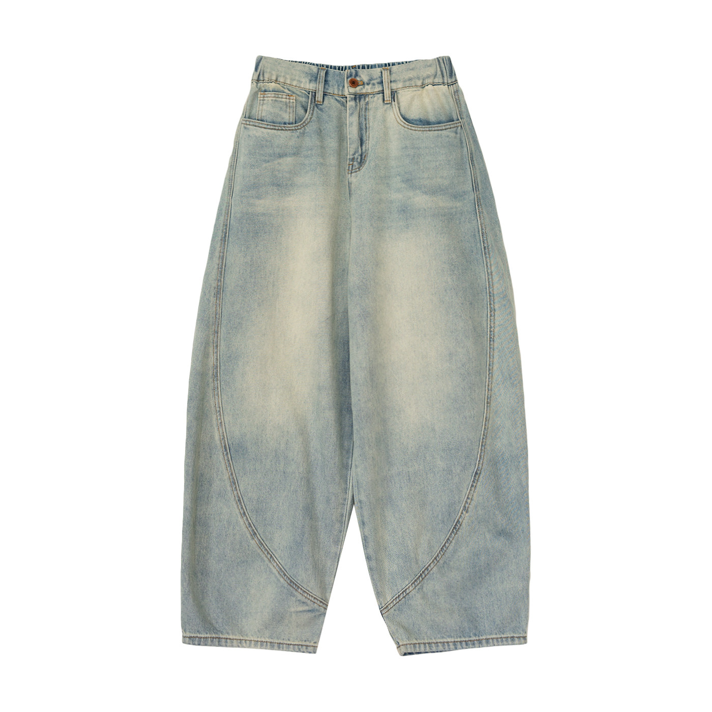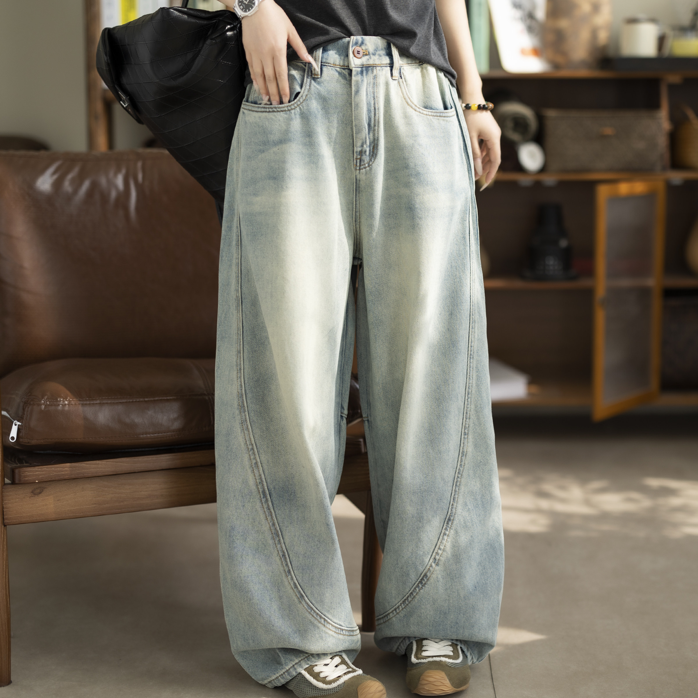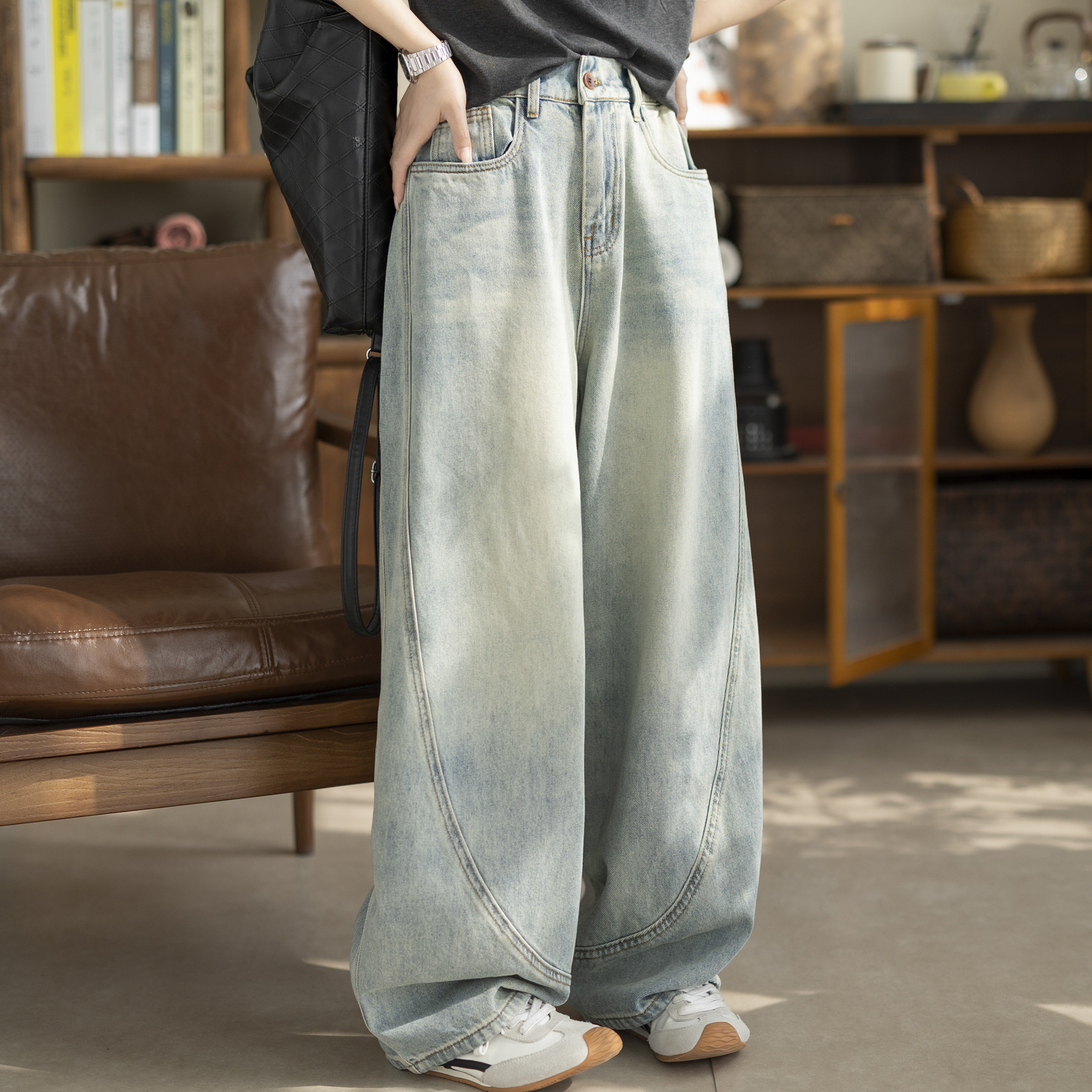 咖咪羽牛仔裤女春季新款做旧水洗直筒宽松百搭复古女装哈伦裤女