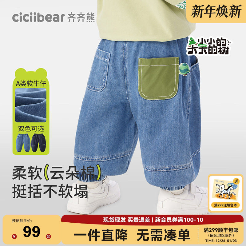 【防褪色】齐齐熊宝宝裤子春秋男童软牛仔裤休闲裤儿童长裤2026新