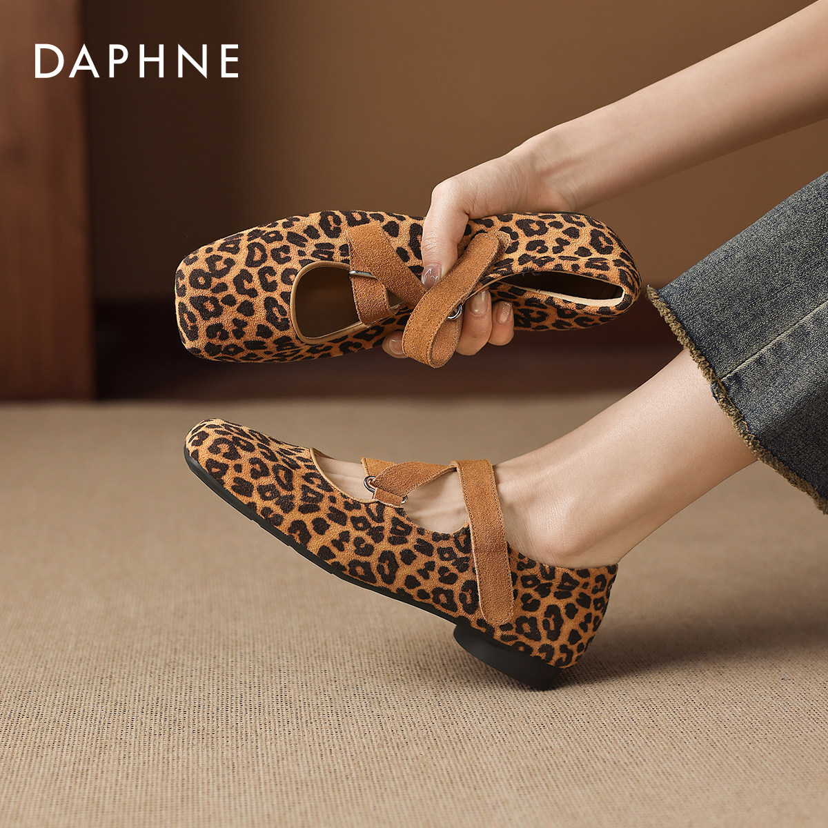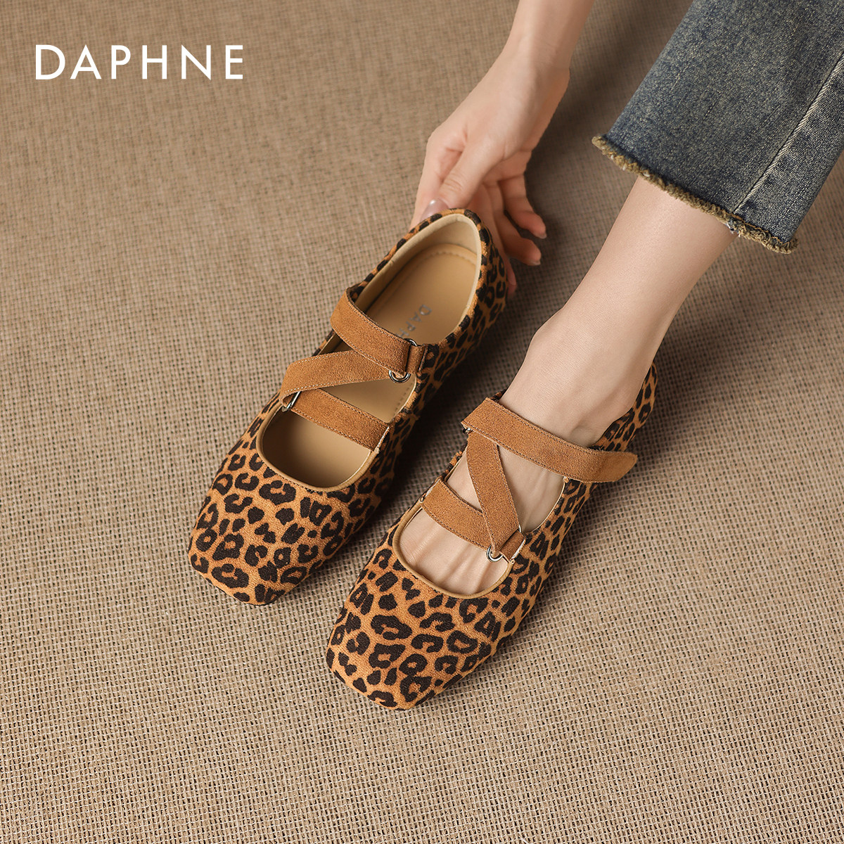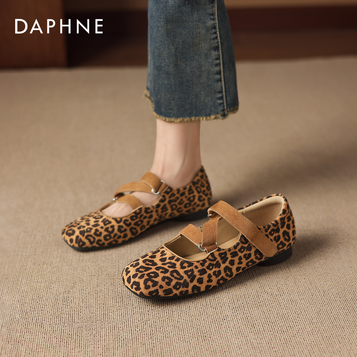 达芙妮豹纹玛丽珍鞋女2026春季新款法式复古粗跟单鞋平底芭蕾女鞋