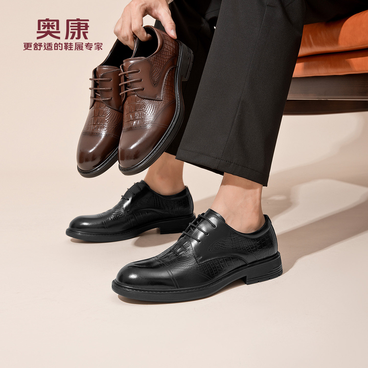 奥康 男鞋2026新款真皮商务正装休闲皮鞋男士英伦风雕花通勤鞋子N