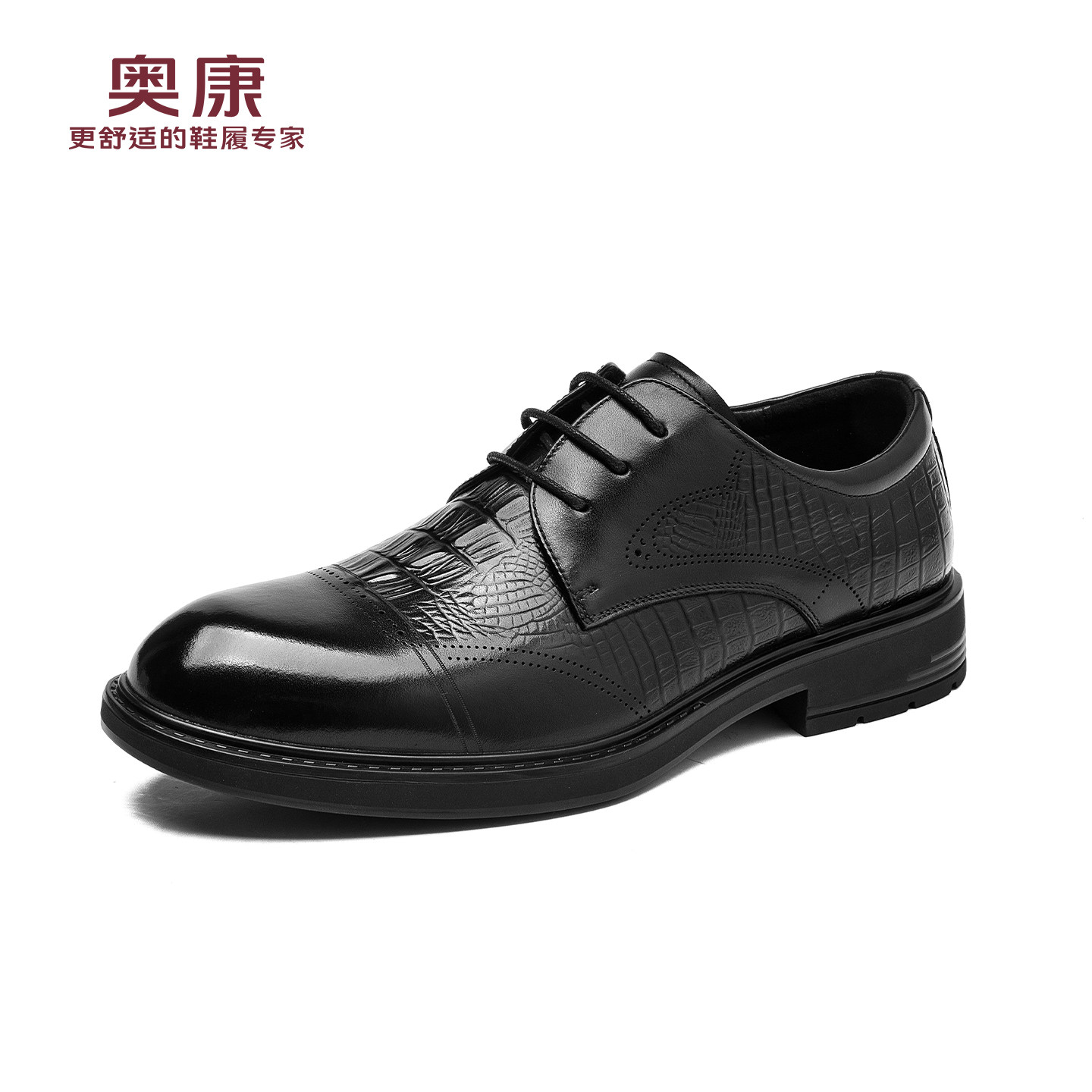 【内增高】奥康男鞋春秋季新款商务正装德比鞋男真皮压花男士皮鞋
