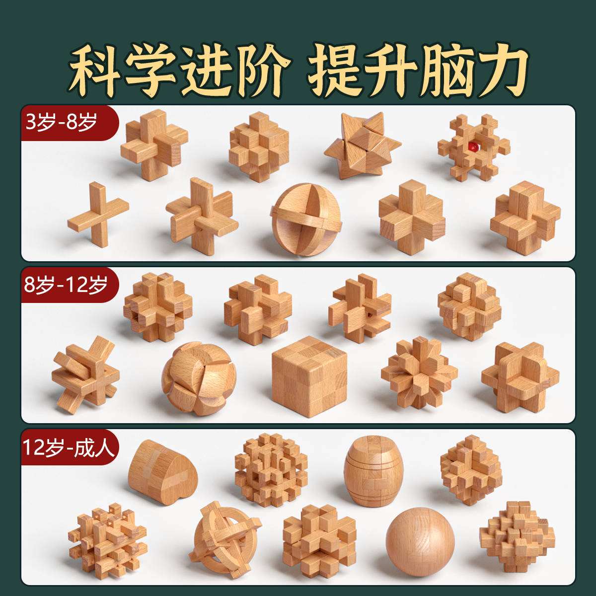 儿童高难度智力解扣解环鲁班锁孔明锁榫卯小学生开发动脑全套玩具