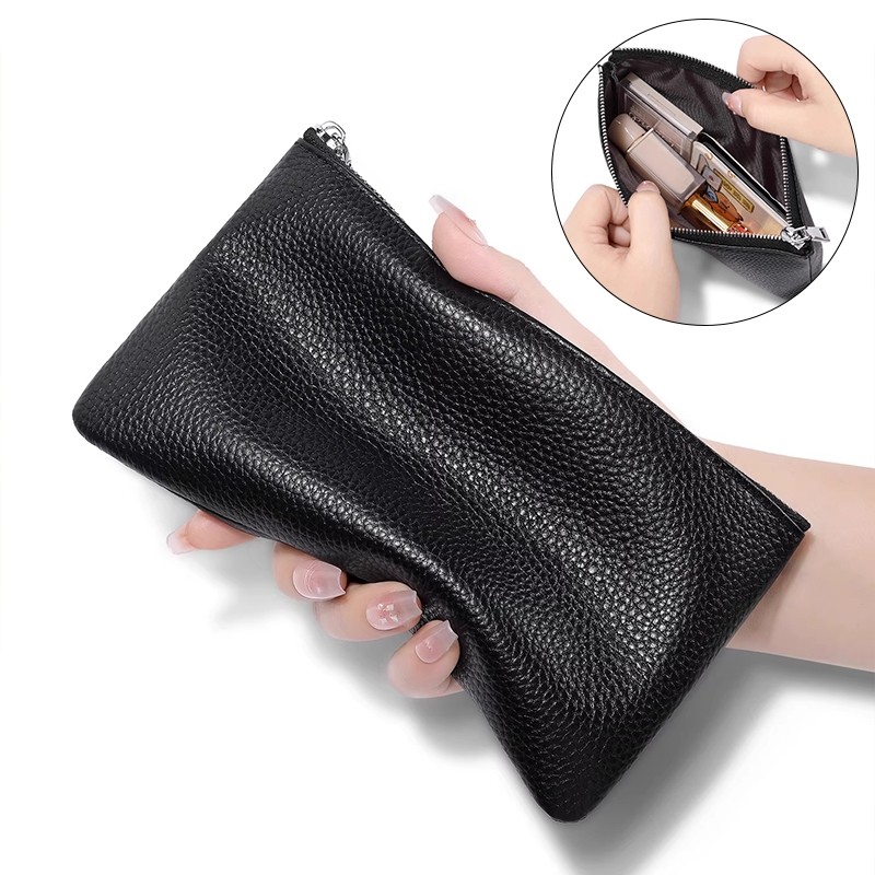 外贸出口尾货女士迷你拉链钱包真皮头层牛皮清仓手拿手抓女包卡包