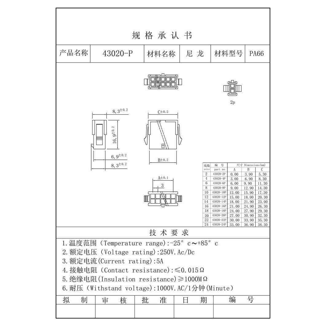 MX3.0mm接插件 胶壳 母壳 连接器 小5558插头 43020-2P-4P-8P-16P