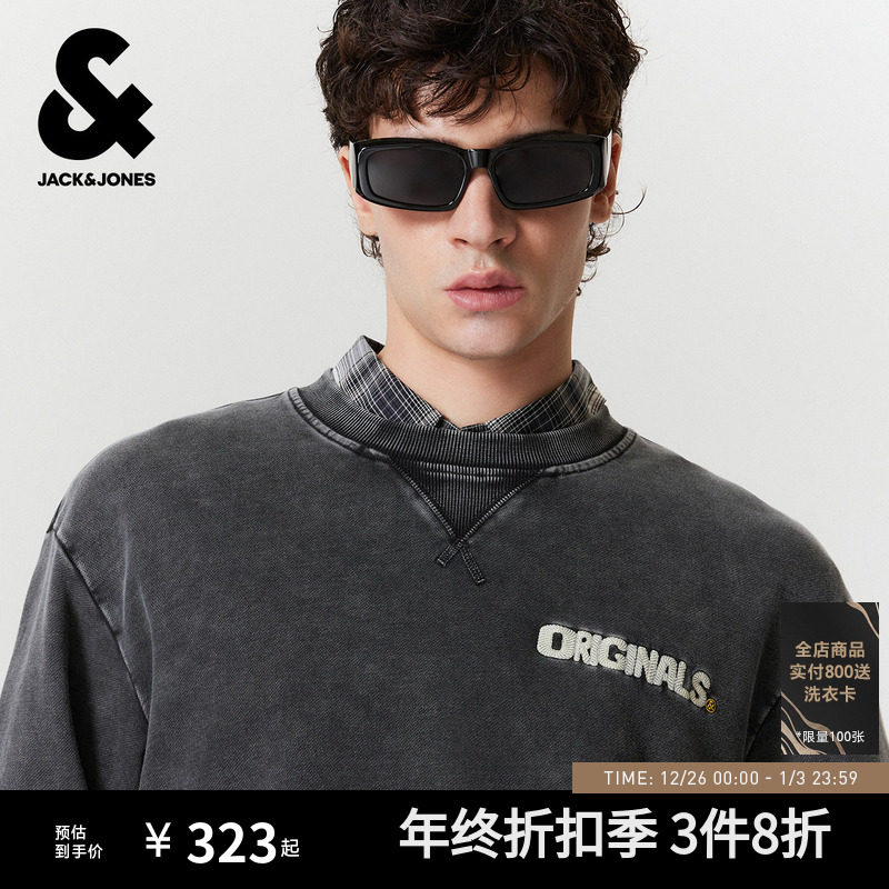【做旧水洗】杰克琼斯男装秋季新款纯棉卫衣刺绣印花外套宽松上衣