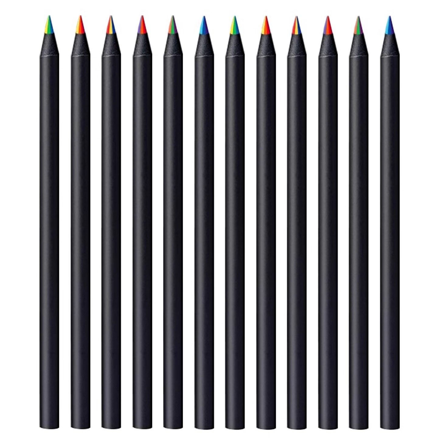 七色儿童彩虹铅笔绘画黑木学生彩色铅笔多色合一七彩铅笔