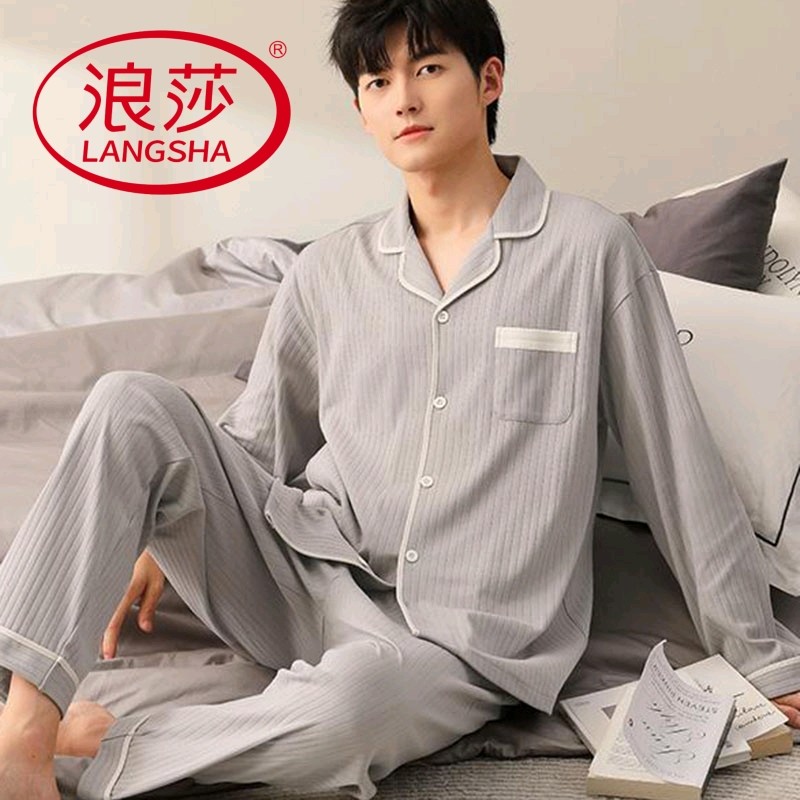 浪莎睡衣男士纯棉2025年新款春秋薄款长袖大码秋冬男款家居服套装