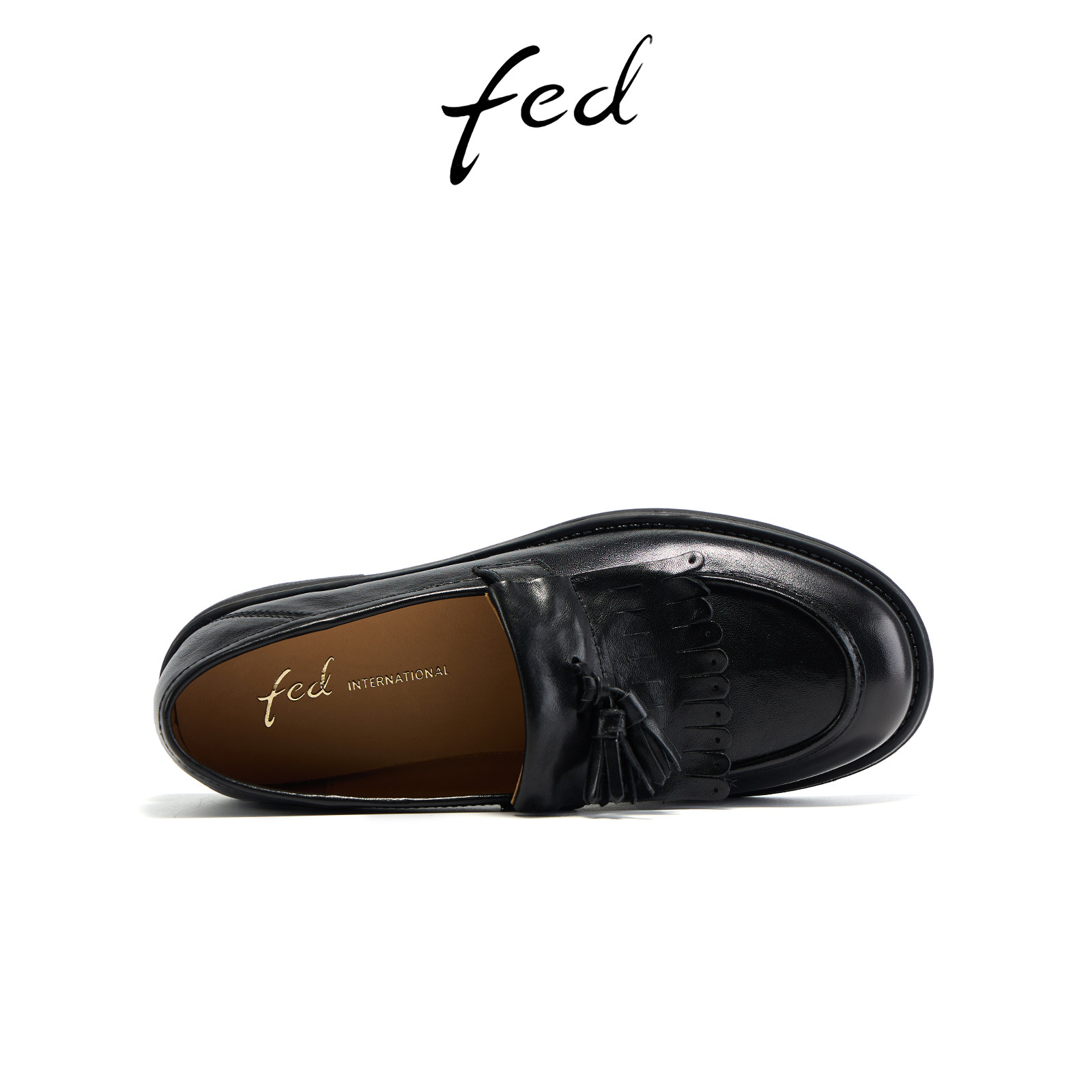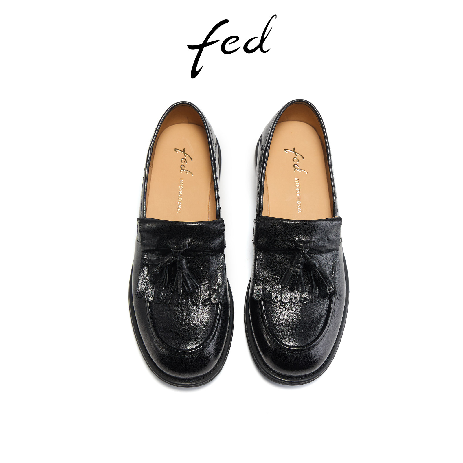 fed墨影垂痕乐福鞋女春季新款女鞋低跟流苏单鞋黑色小皮鞋女ZC118